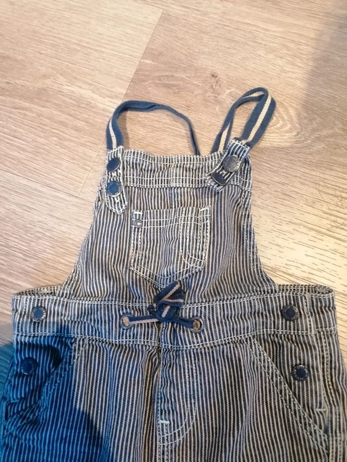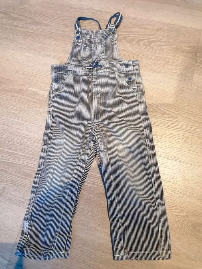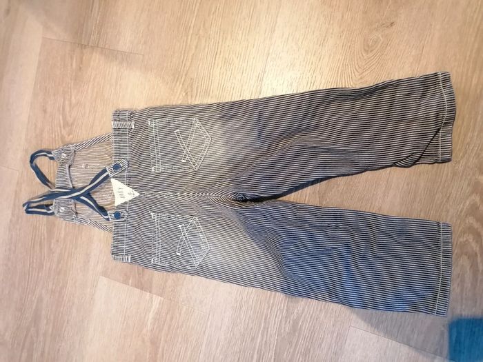 Bonjour, je vends cette salopette bleue marine et beige de la marque Tape à l'œil taille 36mois en très bon état. Lavé maison non fumeur