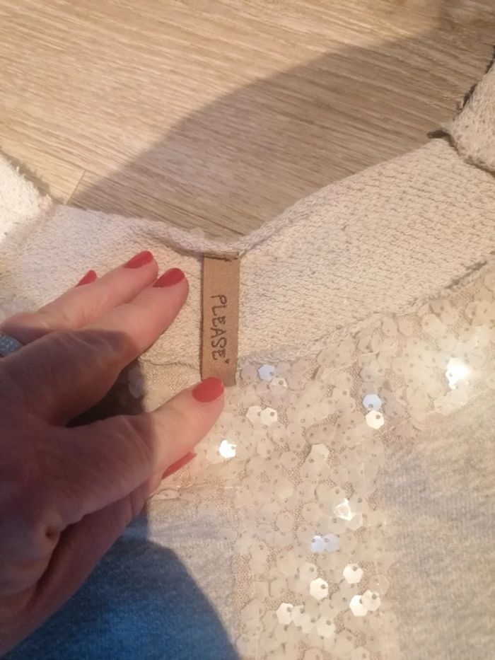 Bonjour, je vends ce tee shirt manches 3/4 gris de la marque Please taille 42/44 en très bon état. Lavage délicat pour les sequins. Maison non fumeur.