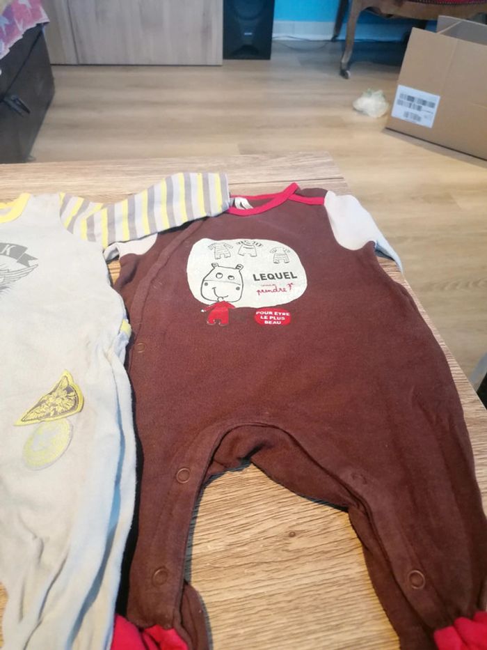 Bonjour, je vends ce lot de 3 pyjamas en coton taille 3mois en bon état. Marques H&M, Disney et Orchestra. Quelques peluches mais ne gêne en rien l'utilisation. Lavé maison non fumeur.