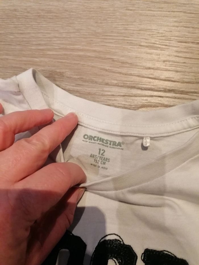Bonjour, je vends ce tee shirt blanc de la marque Orchestra taille 12ans. Très bon état. Lavé maison non fumeur.