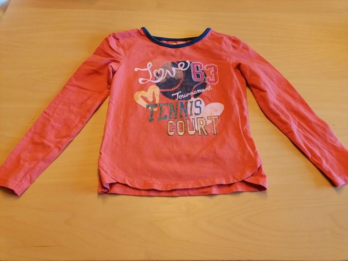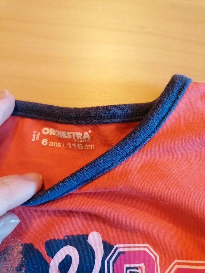 Bonjour, je vends ce tee shirt à manches longues corail de la marque Orchestra taille 6ans en très bon état. Lavé maison non fumeur.