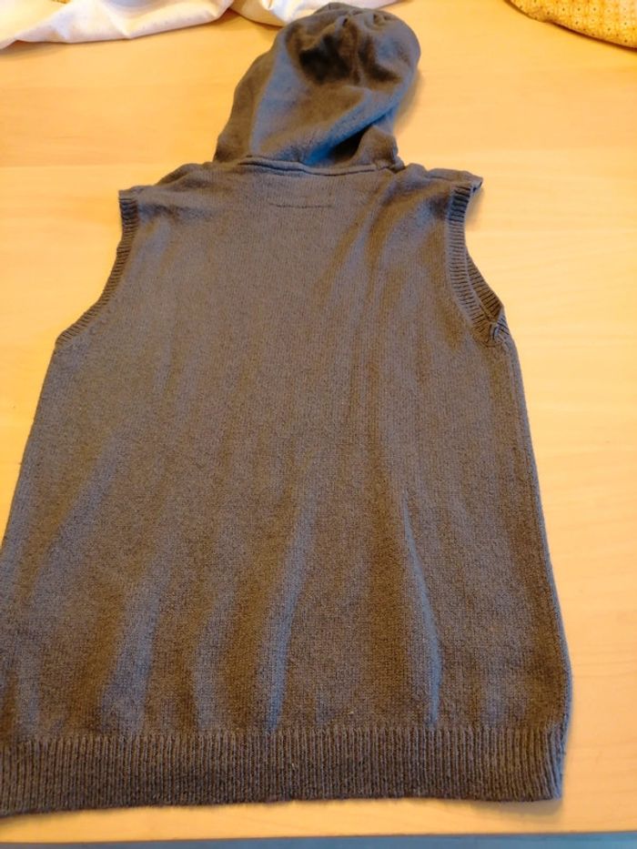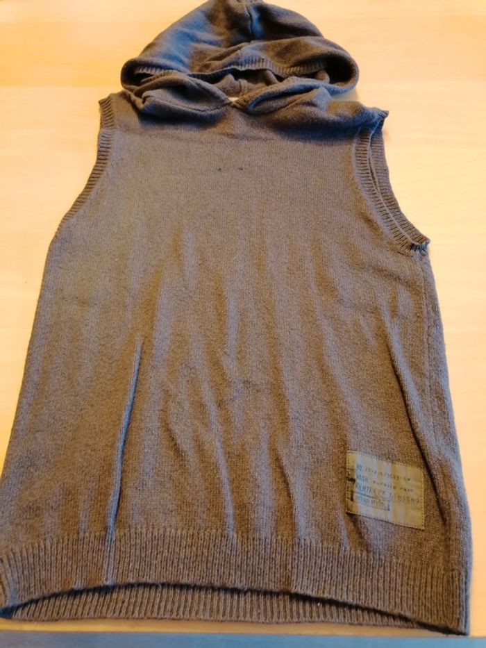 Bonjour, je vends ce pull à capuche dans manches gris de la marque CFK. Taille 10ans. Très bon état. Lavé maison non fumeur.