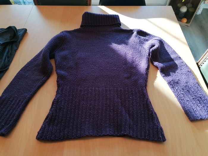 Bonjour, je vends ce pull à col roulé violet de la marque les 3 Suisses. Taille 34/36. Très bon état. Lavé maison non fumeur.