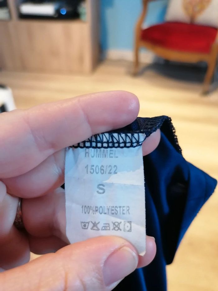 Bonjour, je vends ce tee shirt bleu marine et bleu clair de la marque Hummel taille S. Très bon état. Lavé maison non fumeur.
