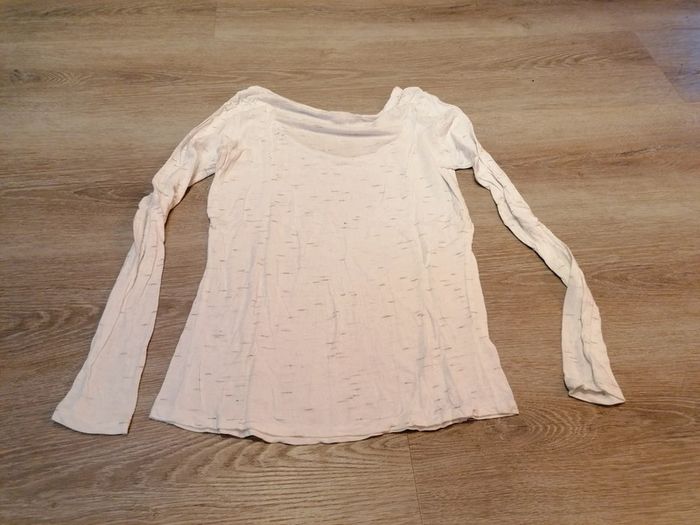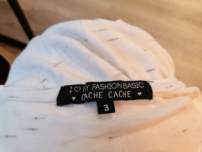 Bonjour, je vends ce tee shirt a manches longues blanc. Marque cache cache. Taille 3. Très bon état.
