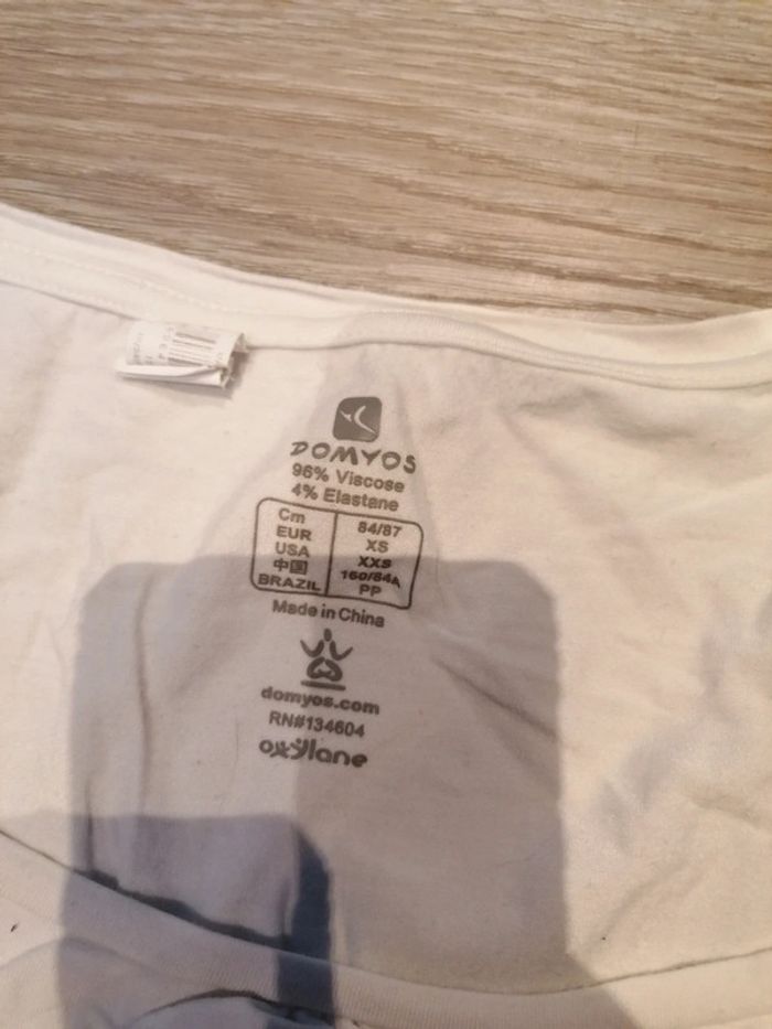 Bonjour, je vends ce tee shirt blanc avec motif arbre. De la marque Domyos. Taille XS. Très bon état. Lavé maison non fumeur.