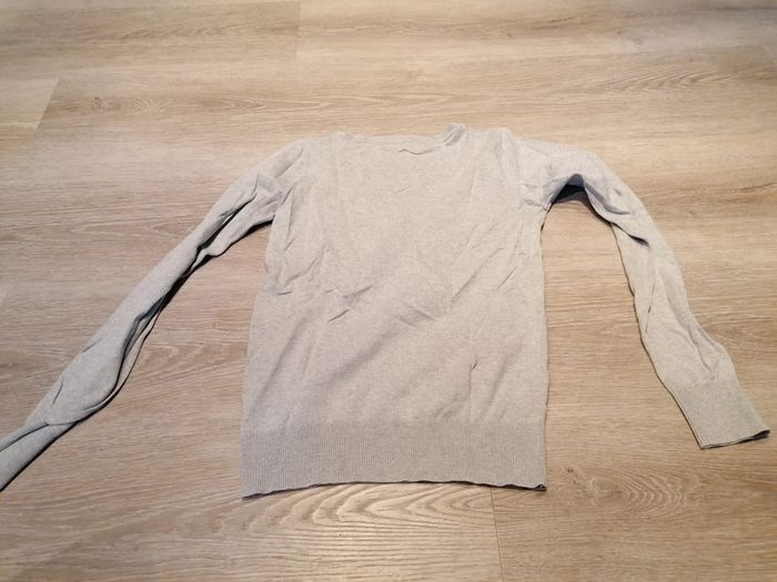 Bonjour, je vends ce pull gris col V de la marque cache cache. Taille 2. Très bon état. Lavé maison non fumeur.
