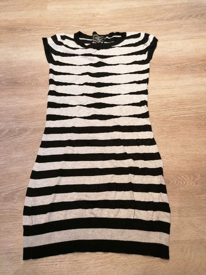 Bonjour, je vends cette mini robe de la marque clock house. Taille M. Rayée grise et noire.
