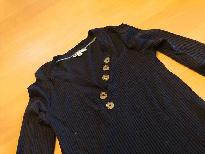 Bonjour, je vends ce tee shirt manches longues bleu marine de la marque creeks col V. Taille S. Très bon état.