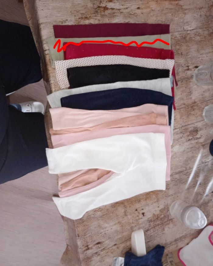 A vendre lot de plus d'une dizaine de legging ( il manque certain sur les photos) Effet rayure en relief sur trois roses et le vert La plupart non jamais étaient porté Différente marque comme Kiabi ,Zeeman ou obaïbi Kaki vendu