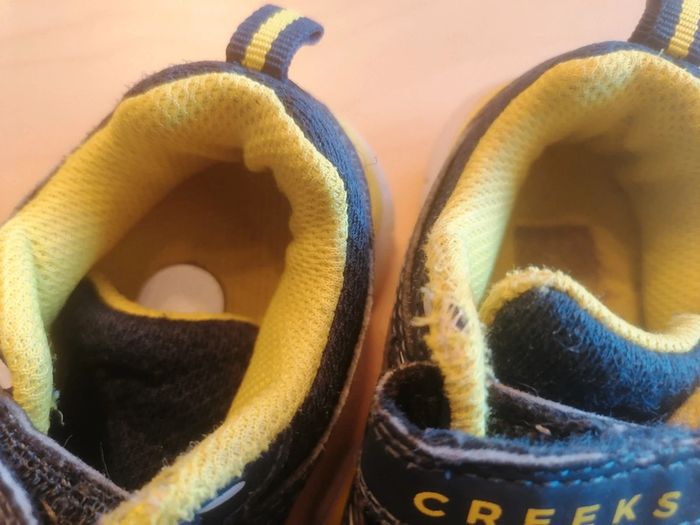 Bonjour, je vends cette paire de baskets pour enfant de la marque creeks. Taille 23. Un peu usées (voir photos).