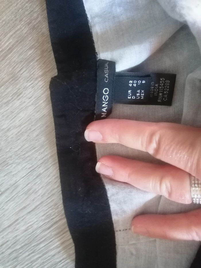 Bonjour, je vends cette jupe noire et blanche. Marque Mango. Taille 42. Très bon état.