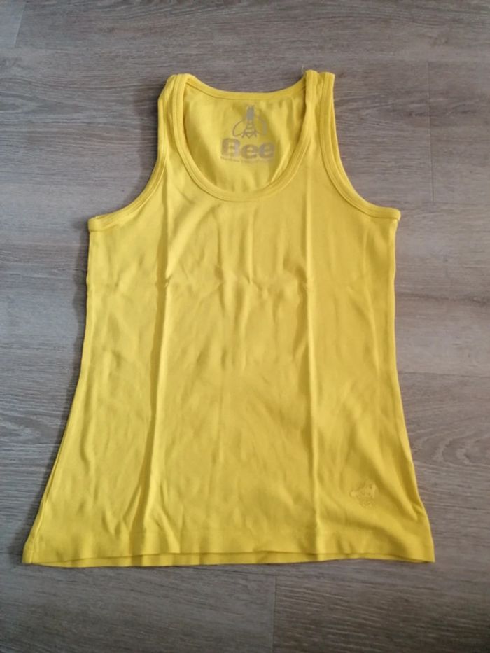 Bonjour, je vends ce débardeur jaune de la marque Bissbee. Taille L. Très bon état. Lavé maison non fumeur.