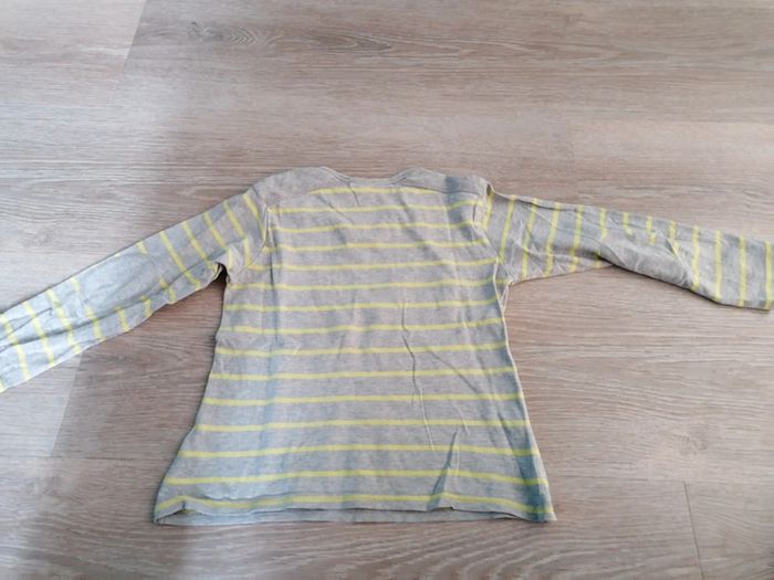 Bonjour, je vends ce tee shirt à manches longues gris rayé vert toy story. Très bon état. 5ans. Lavé maison non fumeur.