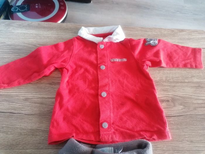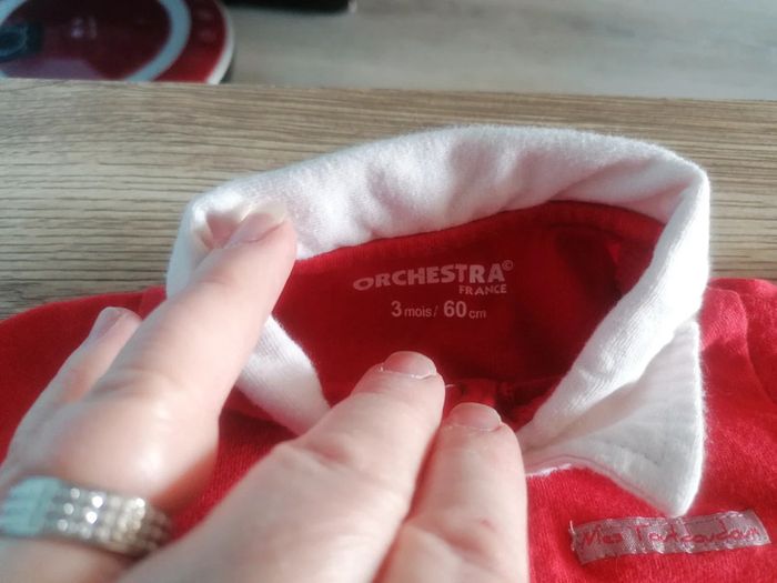 Bonjour, je vends cet ensemble composé d'un pantalon et d'un tee shirt avec col à manches longues qui se boutonne sur le devant. Léger. De la marque orchestra. Taille 3m
