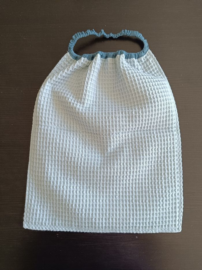 Neuf Largeur 31 cm Hauteur 38 cm Doublé tissu nid d'abeille bkeu clair Élastique bleu/ gris qui s'étire jusqu'à 68m pour un passage facile autour du cou en toute autonomie Idéal 3-8ans Pour l'école cantine nounou ....