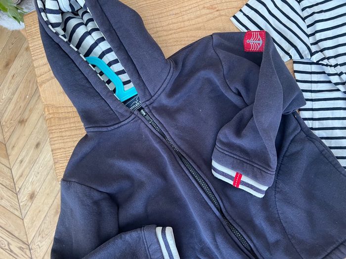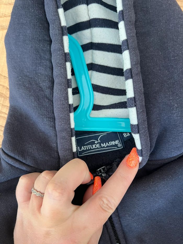 Ensemble 8 ans marine veste gilet  matelassée à capuche t-shirt marinière - photo numéro 6