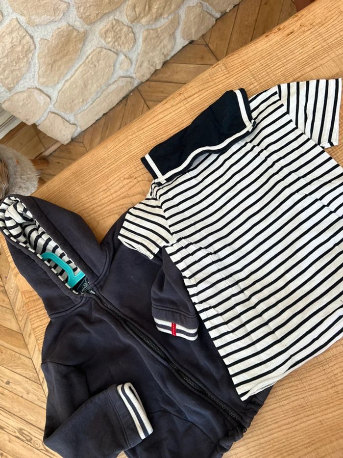 Ensemble 8 ans marine veste gilet  matelassée à capuche t-shirt marinière - photo numéro 3