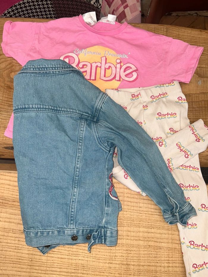 Ensemble 4 5 ans Zara barbie t-shirt loose legging veste en jean fille été - photo numéro 1