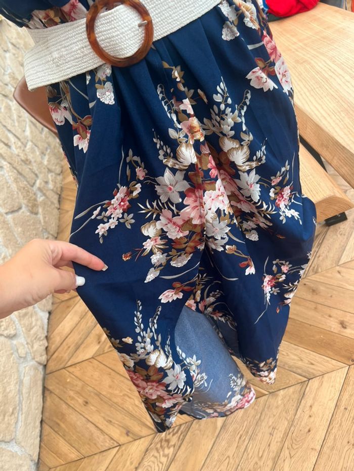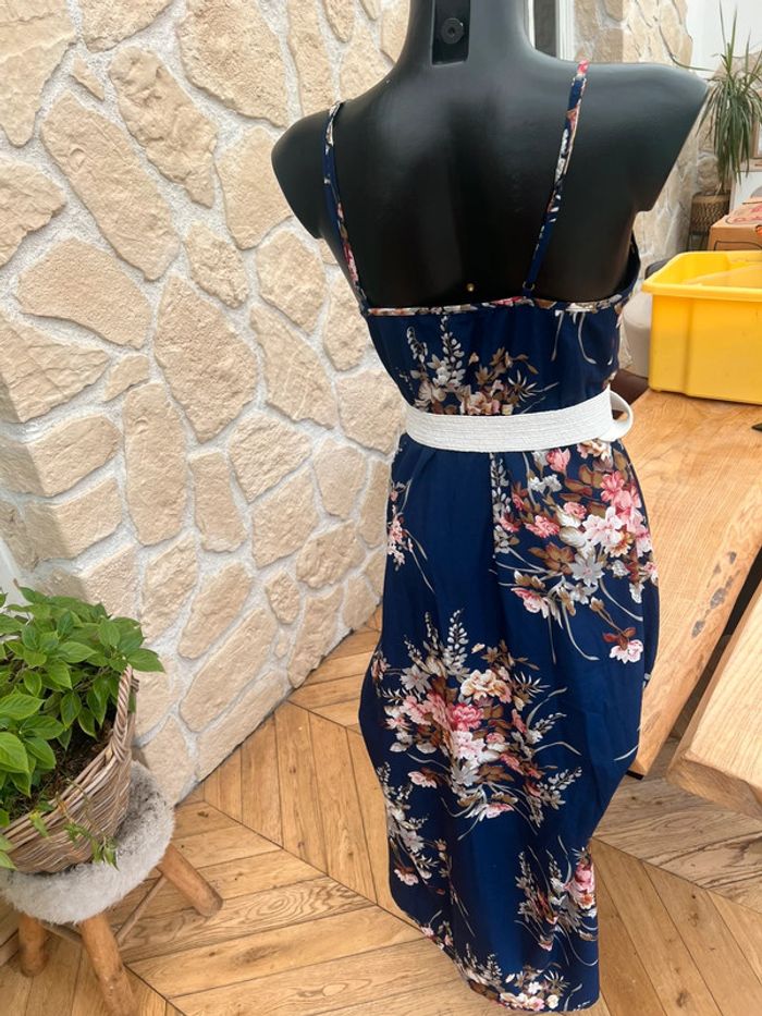 Robe longue shein taille S 36 bleu marine à fleurs été