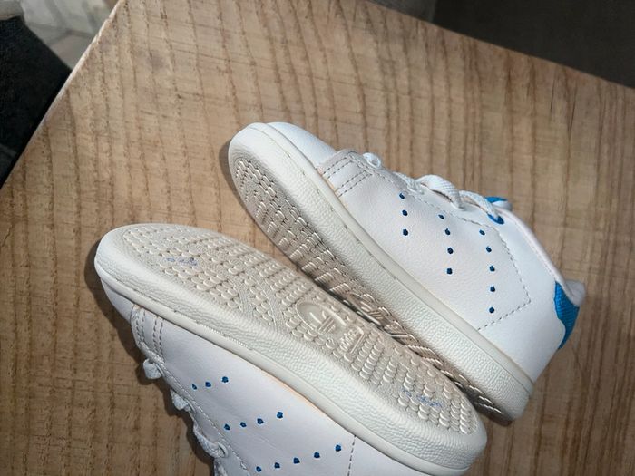 Basket Stan Smith adidas bleu clair et blanche à lacets élastiques peu portées Elles n’ont pas de signe d’usure Garçon ou fille Peu portées