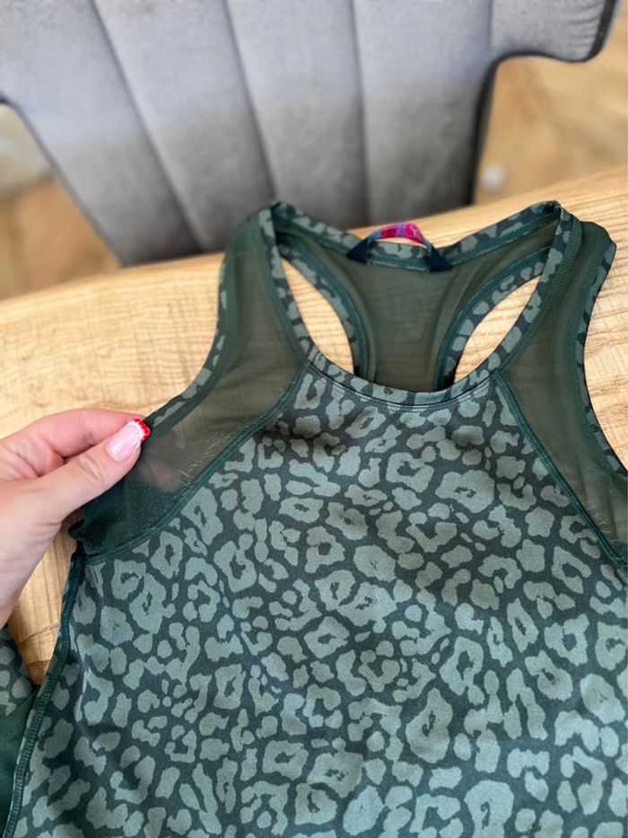 Ensemble de sport Marque hunkemoller hkmx taille S 36 Couleur vert kaki Peu porté Débardeur coupe Marcel en bon état Pantalon Legging avec poches latérales pour le téléphone en très bon état Acheté 69€ peu porté