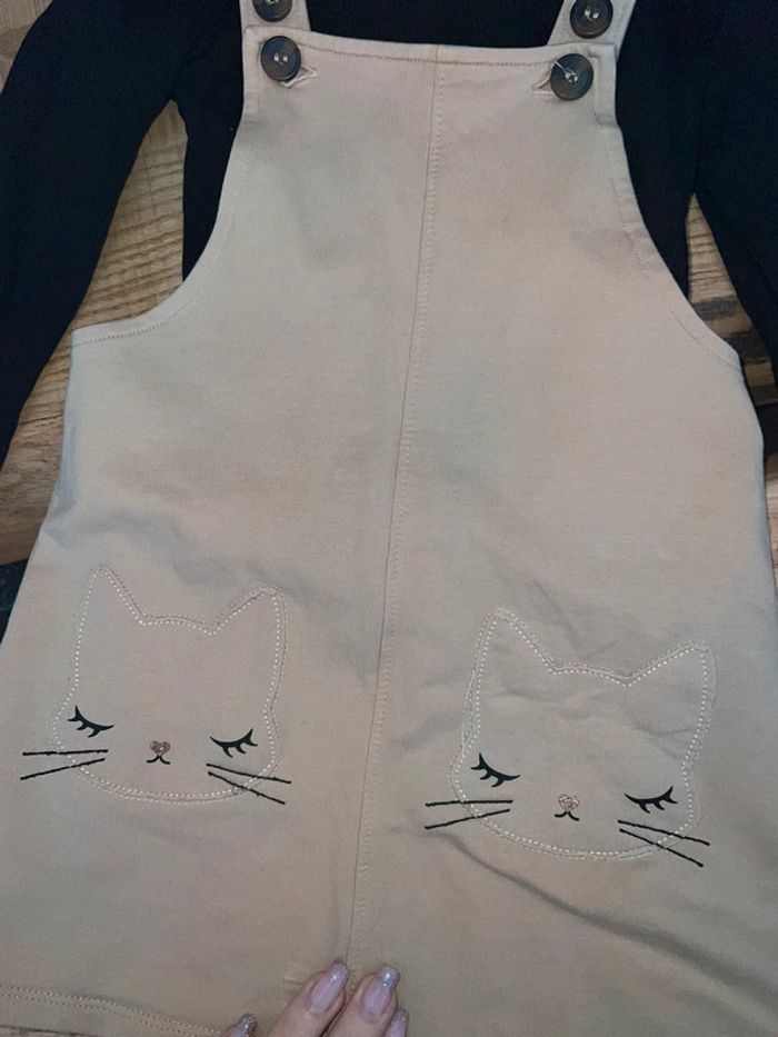 Ensemble 2-4 ans 3 2 4 robe salopette H&M sous pull kiabi chat - photo numéro 3