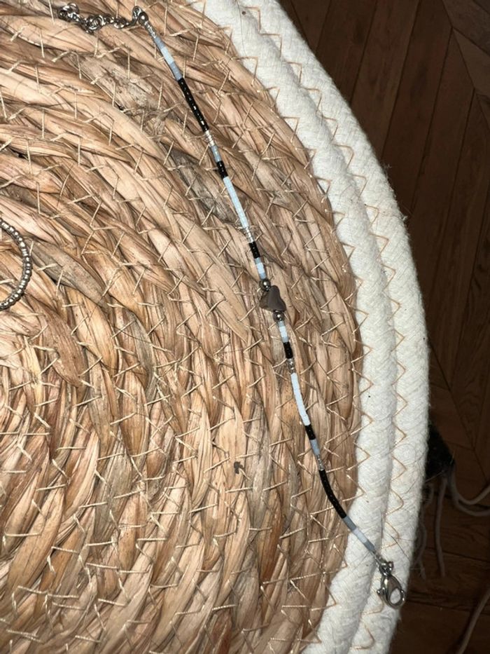 Comme neuf possible de livrer dans un pochon ou boîte pour offrir Acheté en bijouterie ! Adoptez l'élégance discrète avec ce bracelet en argenté, où se mêlent délicatesse et sophistication. Les perles en nacre grise, en forme de cœur, apportent une touche douce et raffinée, tandis que les perles argentées et argentées facettées ajoutent une brillance subtile, qui capte la lumière à chaque mouvement. Quelques petites perles noires viennent parfaire cet ensemble harmonieux, créant un contraste élégant et intemporel. Un bracelet à porter au quotidien ou pour sublimer vos tenues de soirée, et qui saura accompagner vos moments précieux avec style. Ce bracelet se compose : - de perles en forme de coeur en plaqué argent - de perles noires grises blanches argenté