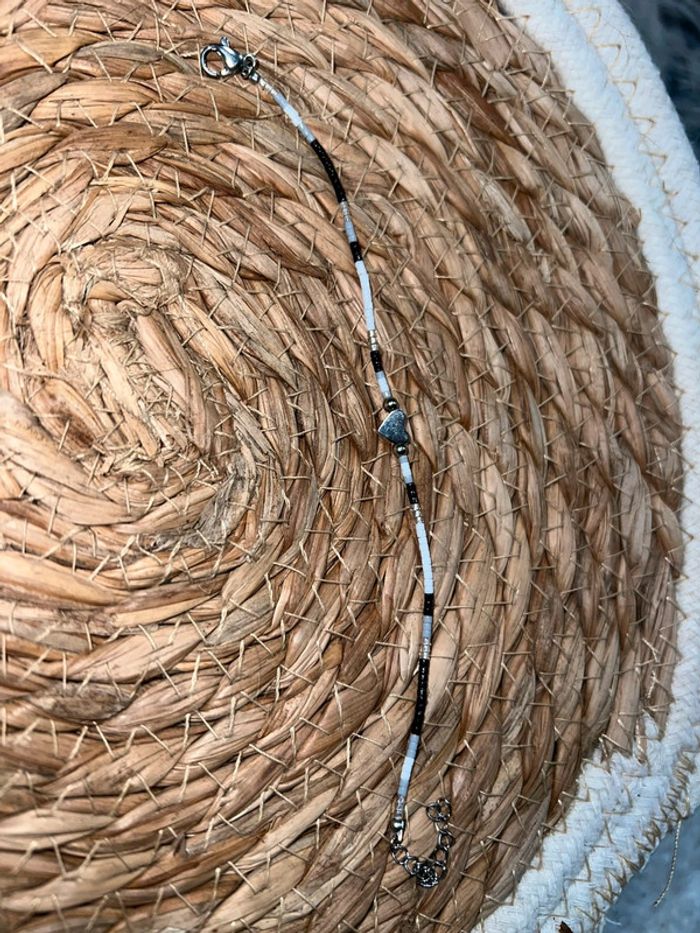 Bracelet Perle Femme neuf gris noir blanc cœur - photo numéro 1