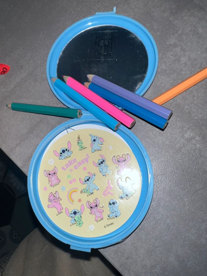 Petit miroir stitch Attention l’encoche ne ferme pas Sinon neuf Encore le film de protection sur le miroir détail de l’intérieur photo 3 Crayons , stickers , coloriages …