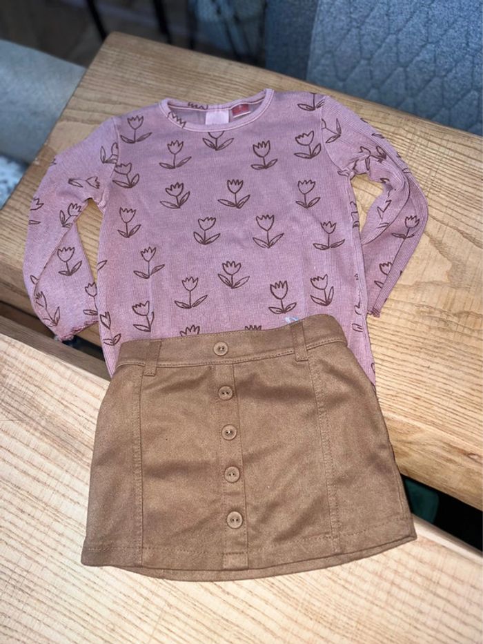 Ensemble Zara 2-3 ans 2 3 4 jupe t-shirt fleurs suédine camel