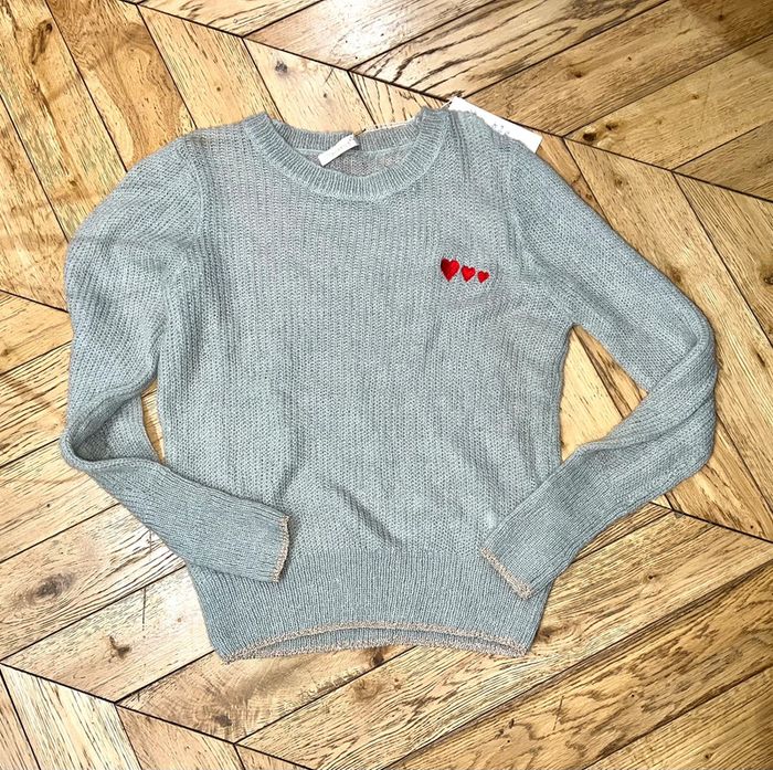 Pull fin laine neuf étiqueté 3 motifs cœurs rouge gris paillette femme T.U 36 38 40 - photo numéro 1