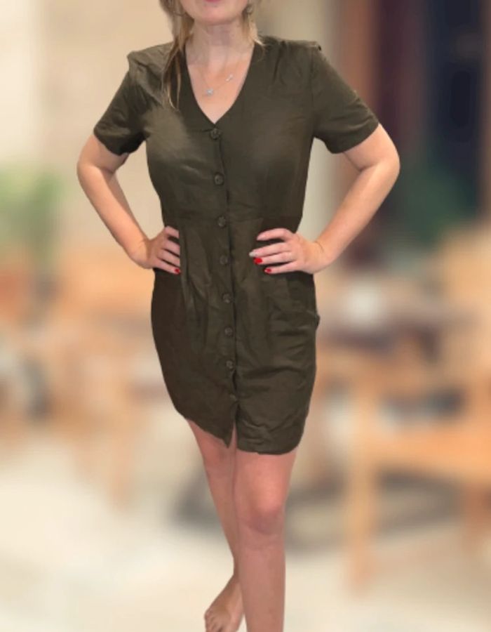 Robe femme été kaki en lin taille M 38 40 boutonnée neuve étiqueté - photo numéro 2