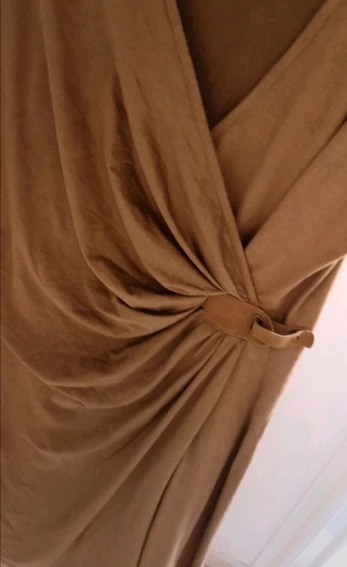 Robe cache cœur avec effet ceinturé sur le côté Touché peau de pêche marron clair Dimension épaule à épaules 38,5cm Aisselle à aisselle 44cm Longueur totale 93 cm Dressing trié par # #tetel66femme40