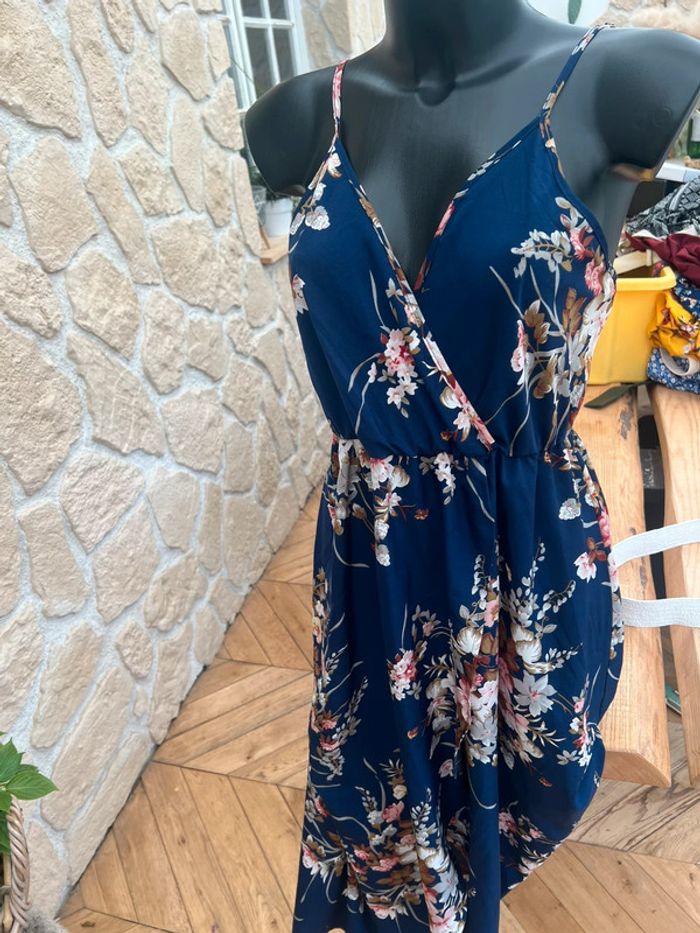 Robe longue shein taille S 36 bleu marine à fleurs été