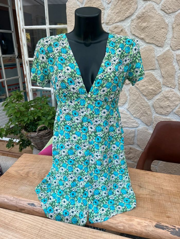 Robe été femme stradivarius taille M 38 neuve étiquetée Zara bleu à fleurs style hippie 60’s
