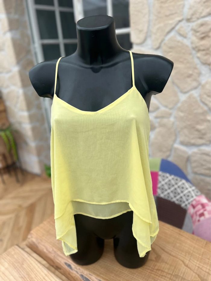 Ensemble d’été jaune jupe à fleurs débardeur voilage S&w 36 38 S M - photo numéro 5