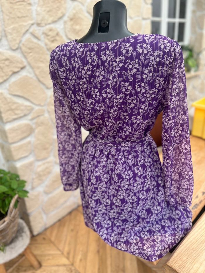 Robe kiabi taille L 40 violet à fleurs blanche voilage casual - photo numéro 3