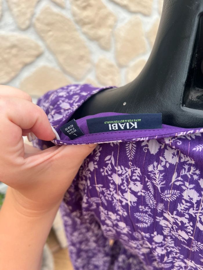 Robe kiabi taille L 40 violet à fleurs blanche voilage casual - photo numéro 5