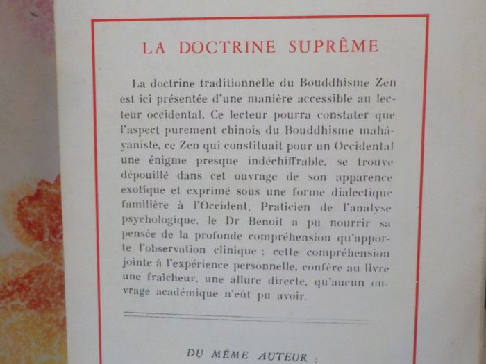 LA DOCTRINE SUPREME selon la pensée zen par Hubert BENOIT Ed. Le Courrier du Livre 1967 Très bon état Résumé en photo n°2