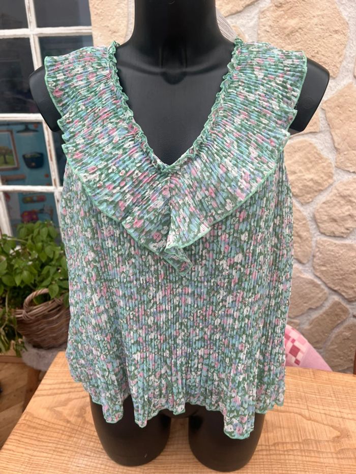 Blouse tunique débardeur néo noir vert à fleurs rose voilage taille 38 M Neuf avec étiquette à 59€95
