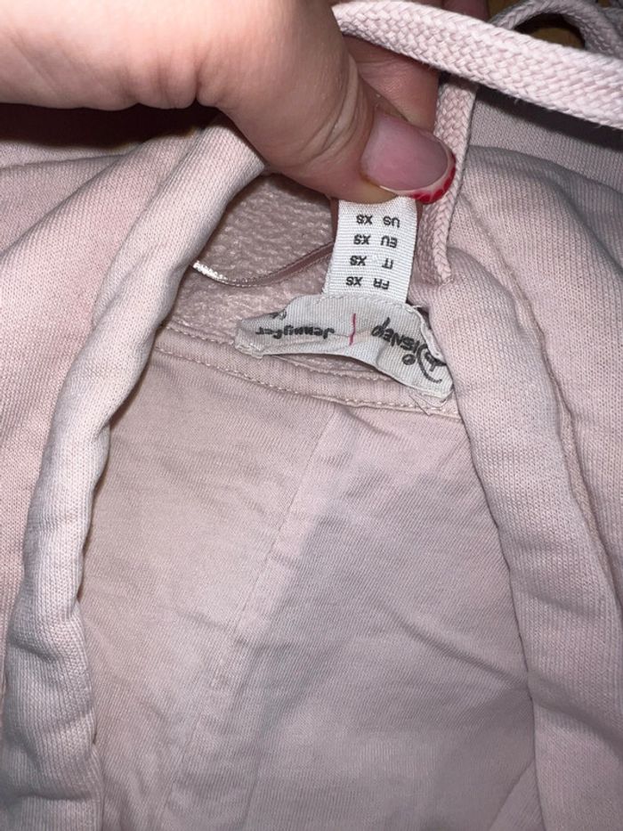 Pull à capuche taille XS Disney X Jennyfer Rose pale à paillettes Petite tache noir de manche discrète