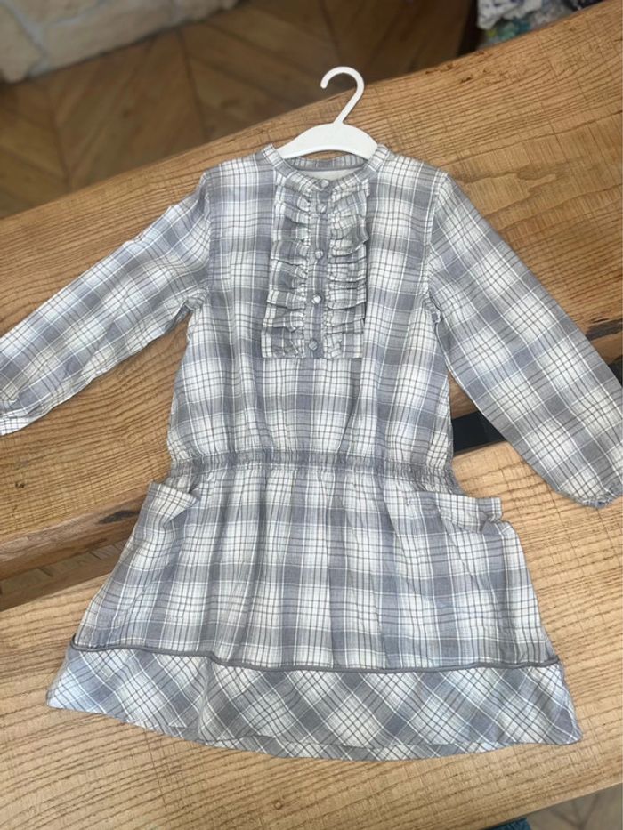 Robe 6 ans sergent major thème château de sable gris et blanc à carreaux manches longues - photo numéro 3