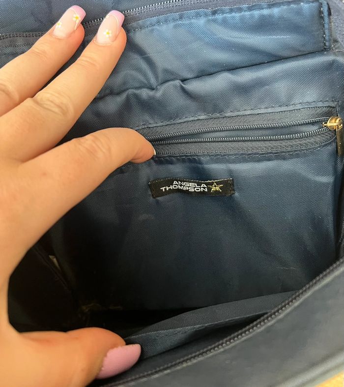 Sac à main bandoulière femme bleu marine et doré Angela Thomson Peu servi