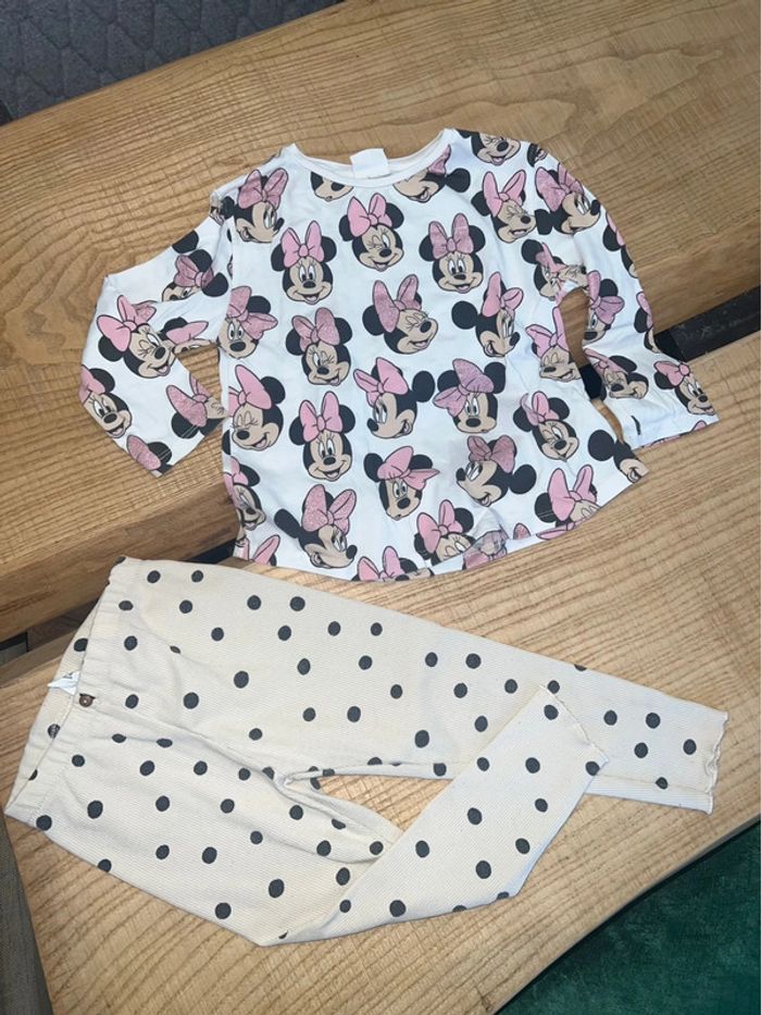 Ensemble en très bon état T-shirt manches longues Minnie Zara 3-4 ans Legging côtelé Zara 2-3 ans