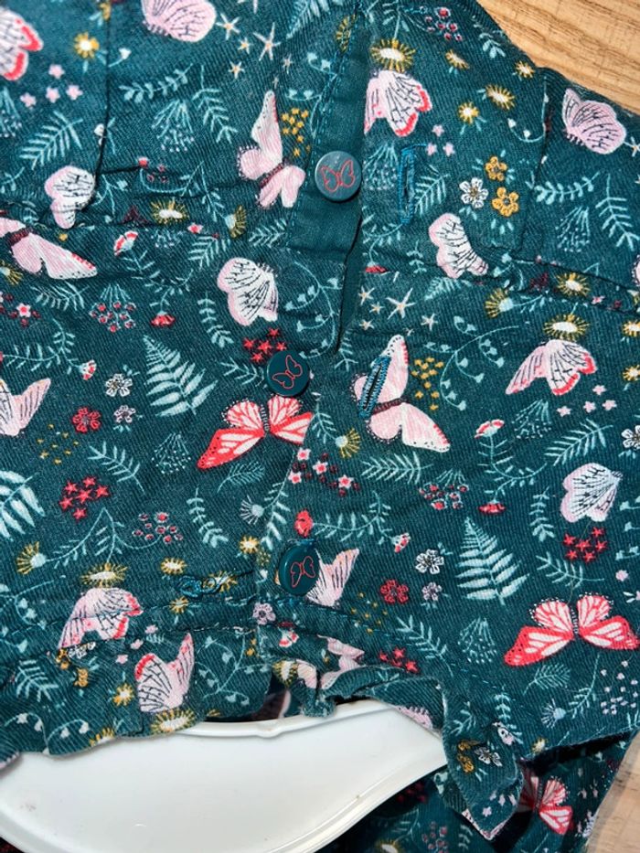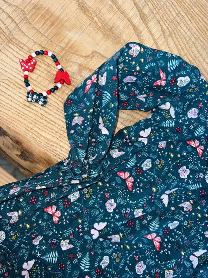 Ensemble 4 ans sergent major thème envolée de papillons robe manches longues bracelet perles bois serre tête Peu porté