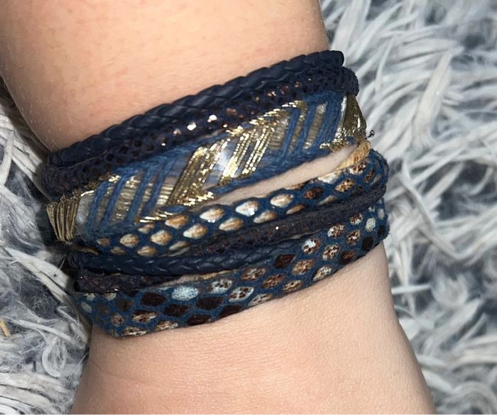 Bracelet manchette doré bleu femme multi rangs tressé - photo numéro 11