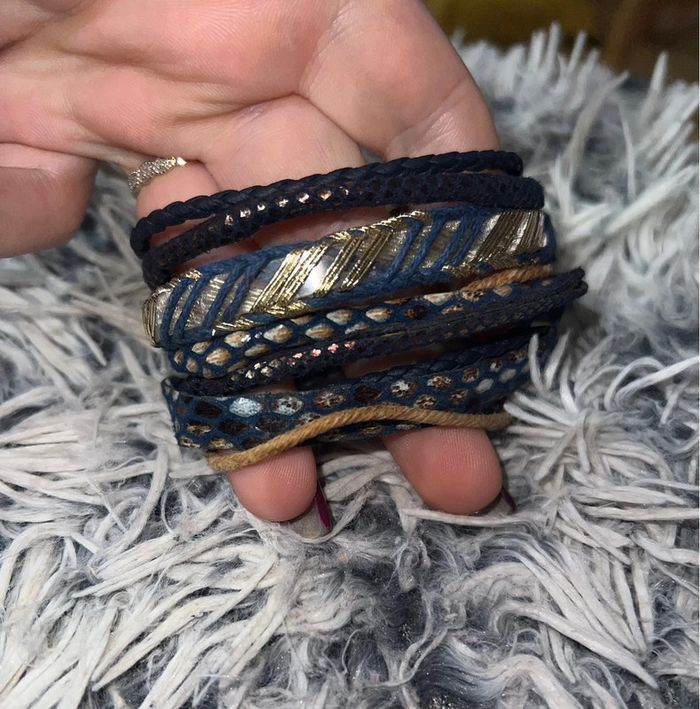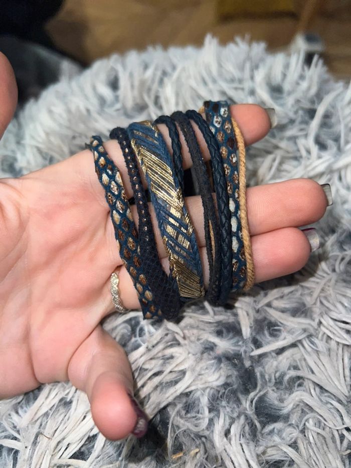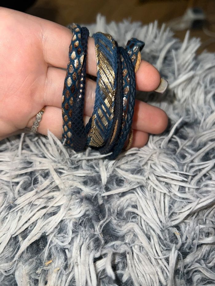 Bracelet manchette doré bleu femme multi rangs tressé - photo numéro 12