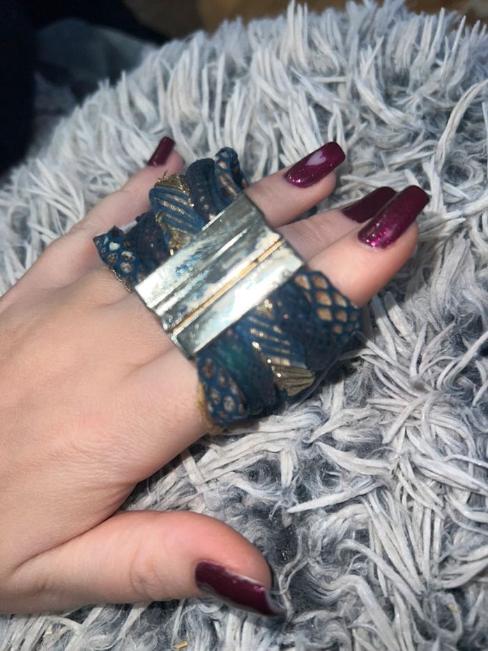 Bracelet manchette doré bleu femme multi rangs tressé - photo numéro 13