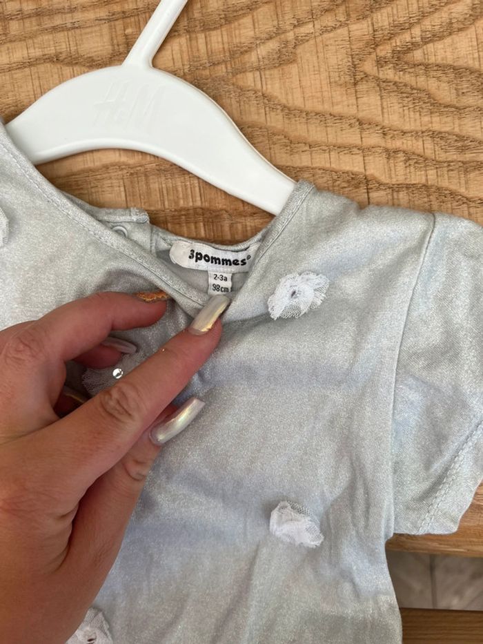Robe 2-3 ans 2 3 pommes tulle fleurs cérémonie été argent - photo numéro 3